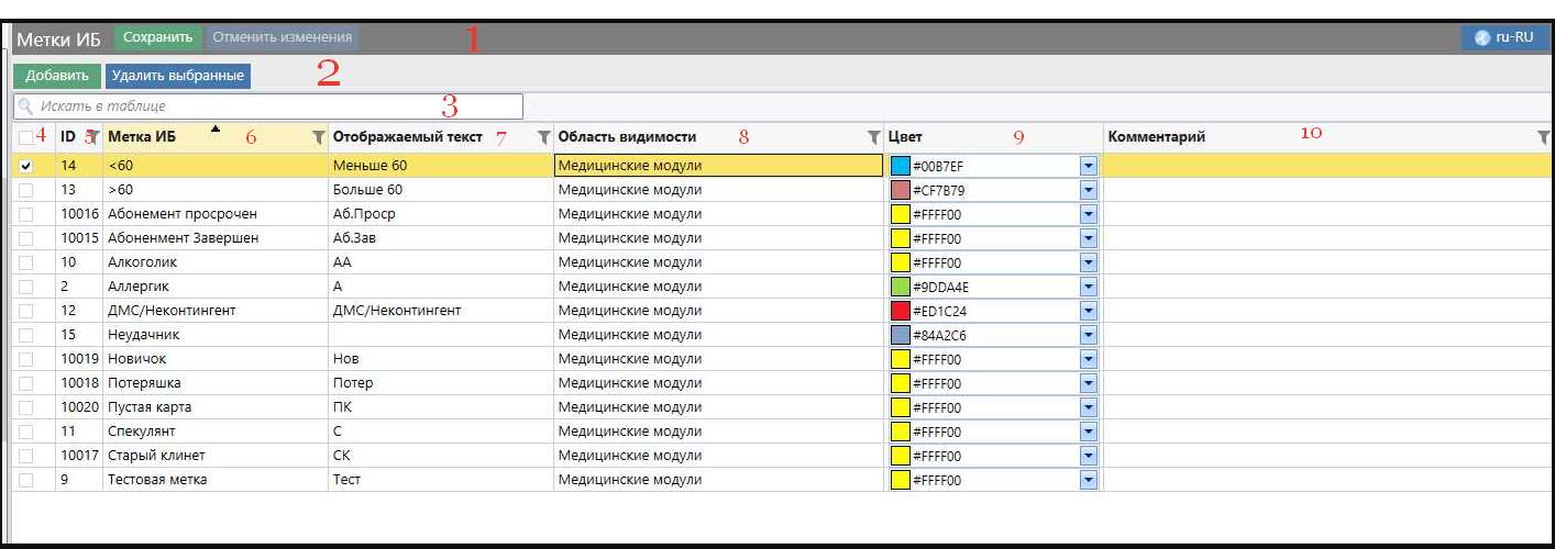 10) Цвет - цвет метки в интерфейсе системы "Санаториум".