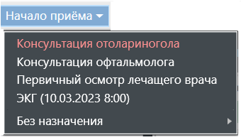 Начало приёма - используется специалистами, которые проводят консультативные приемы и инструментальные исследования.