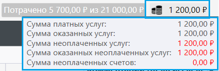Отображает баланс всех назначений со способом оплаты "Оплата из программы". Индикатор баланса доступен из модулей "Регистрация" и "Пациенты".
