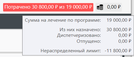 Это информация о лимите СП (если он задан в настройке СП), то есть стоимость всех услуг со способом оплаты "Оплата из программы". Индикатор баланса доступен из модулей "Регистрация", "Пациенты", "Диспетчеризация".