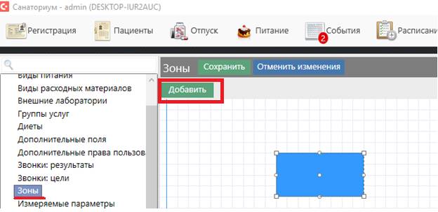 Для создания зоны Вам необходимо перейти в Администрирование, выбрать в списке справочник «Зоны», а затем нажать кнопку Добавить. После этого на область рисования добавится графическое отображение новой зоны. Передвигать область рисования можно перемещением курсора, зажав одновременно левую кнопку мыши и клавишу Ctrl.