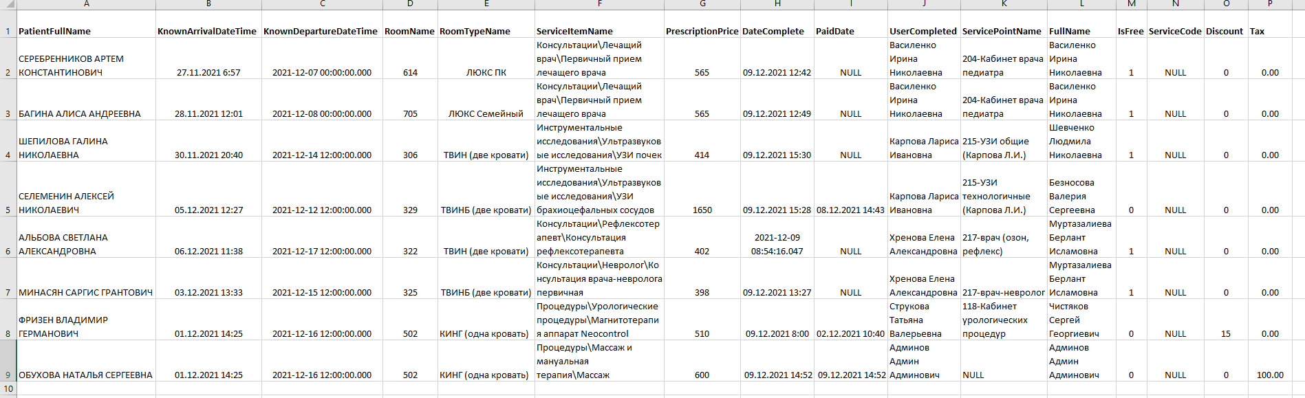 - ServicePointName - имя кабинета, в котором была оказана услуга (в МИС "Санаториум");