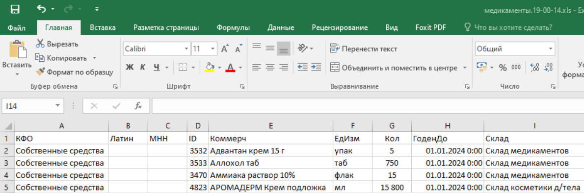 2.1. Загрузка медикаментов из 1С в Санаториум