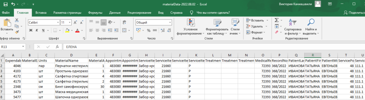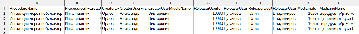 2.2. Выгрузка по израсходованным медикаментам и материалам из Санаториум в 1С