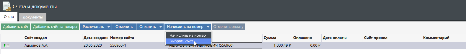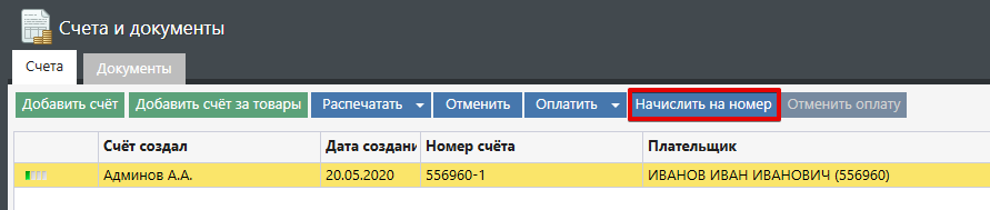 Для этого, в разделе "Счета и документы" нужно выбрать не "Оплатить", а "Начислить на номер":