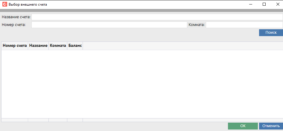 В появившемся окне выполнить поиск, выбрать счет и нажать ОК: