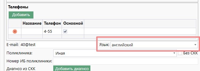 После этого, в расписании пациента будет отображаться текст на том языке, который был выбран на титульной странице ИБ, в поле "Язык"