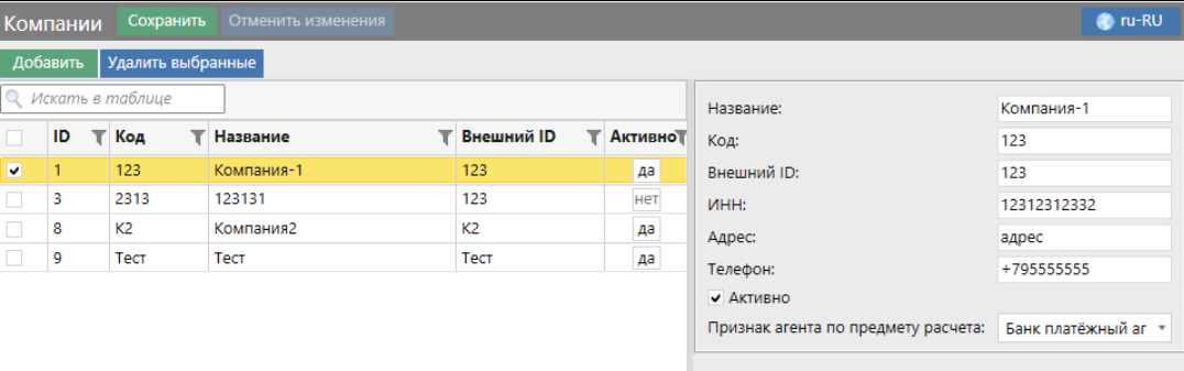 После настройки при назначении ЛП, у которой указанной указан компания-плательщик отображается название компании и ИНН: