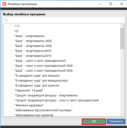 Далее выбираем лечебную программу из списка и нажимаем "ОК".