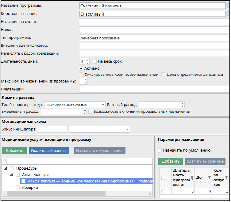 Если есть настроенная интеграция с системой размещения, то Лечебные программы могут добавляться автоматически при передаче данных из нее.
