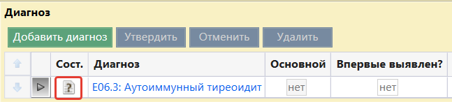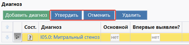 Право, дающее возможность утверждения диагнозов, добавленных не лечащем врачом. Кнопка "Утвердить".