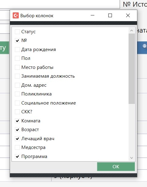 Колонки в таблице регулируются по ширине. Для того чтобы изменить список отображаемых колонок следует нажать кнопку «Выбор колонок» (3) и отметить галочками нужные