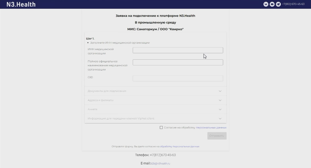 Передача данных из Санаториума в ЕГИСЗ осуществляется через оператора – сервис N3.Health. Сервис разработан компанией ООО «ЭлНетМед».