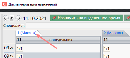 В появившемся окне может отображаться как расписание одного кабинета так и нескольких, если услугу возможно отпускать в нескольких кабинетах.