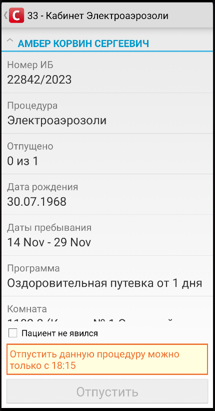 На экран Мобильного приложения добавлена возможность указания причины в случае, если кнопка отпуска процедуры не активна для отпускающего специалиста: