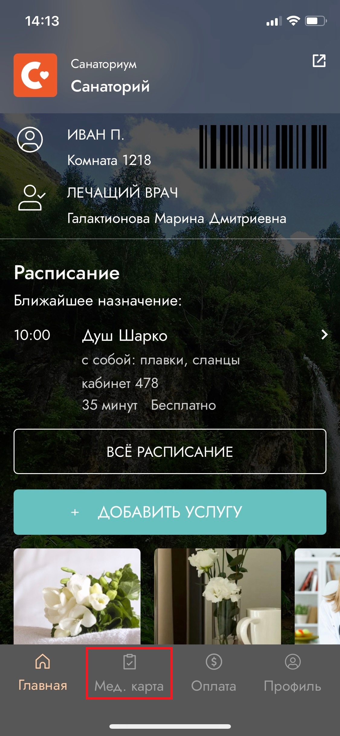 Добавлена настройка, позволяющая при необходимости скрыть вкладку «Мед. карта» на Главной странице Мобильного приложения:
