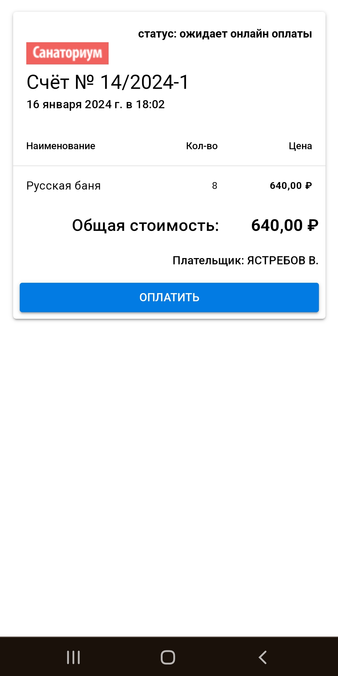 С 2023 года в целях повышения качества сервиса Сбер начал поэтапно переводить своих партнеров Интернет-эквайринга на целевую платформу провайдера ЮKassa. С этой целью в Санаториуме была реализована возможность принимать платежи от пользователей Мобильного приложения через сервис ЮKassa.