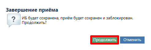 При нажатии на кнопку отобразится диалоговое окно с предупреждением о том, что текущий протокол будет сохранен и заблокирован. Нажмите «Продолжить»: