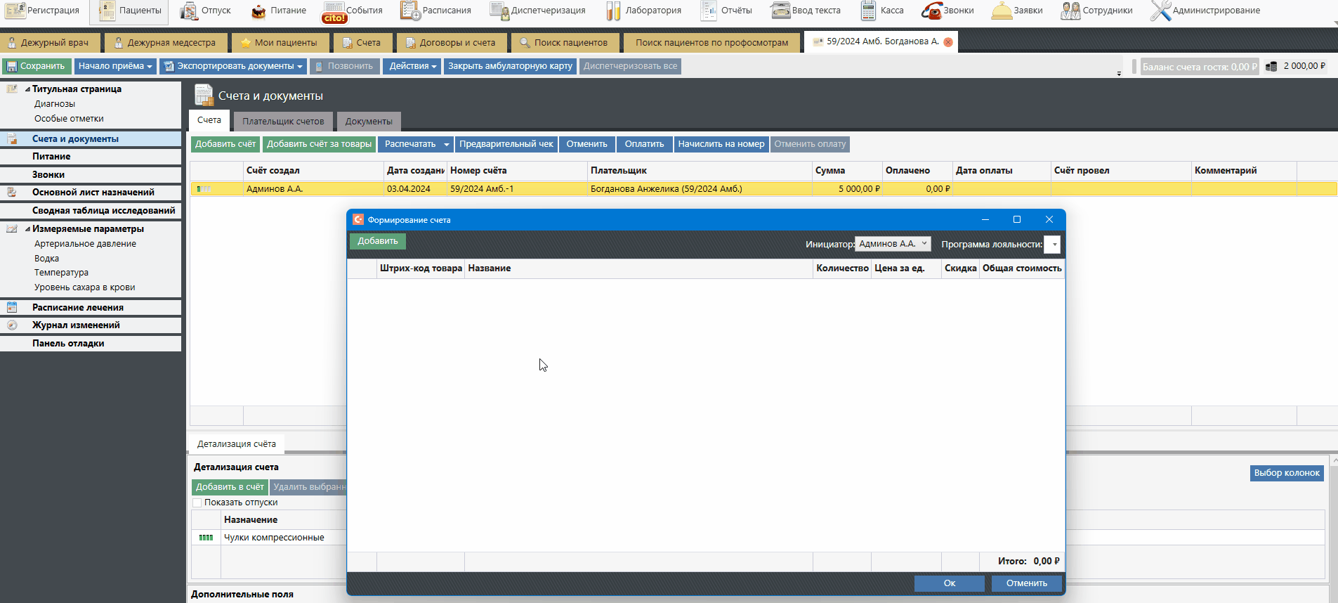 Счета, содержащие Лечебные программы с типом "Абонемент", закрываться на номер не могут.