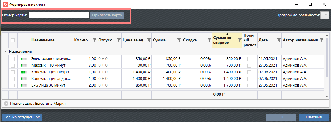 Счета привязанные к карте лояльности нельзя отменить, пока они оплачены. При отмене оплаты все потраченные баллы возвращаются на счет карты.
