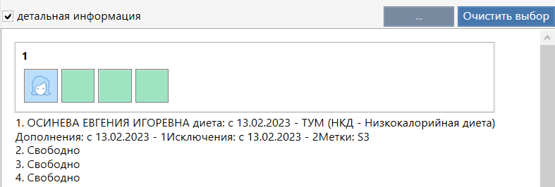 Чекбокс "детальная информация" - при включении отображается детальная информация о пациенте, которой был назначен на соответствующий стол.