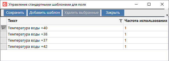 В системе "Санаториум" большинство текстовых полей имею функцию сохранения шаблонов.