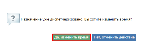 В появившемся сообщении подтверждаем корректность действий, нажатием на кнопку "Да, изменить время".