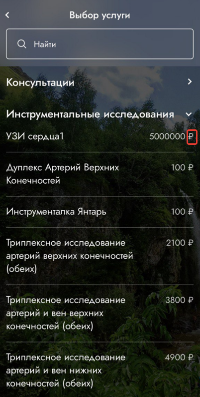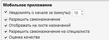 Настройка услуг для отображения в мобильном приложении