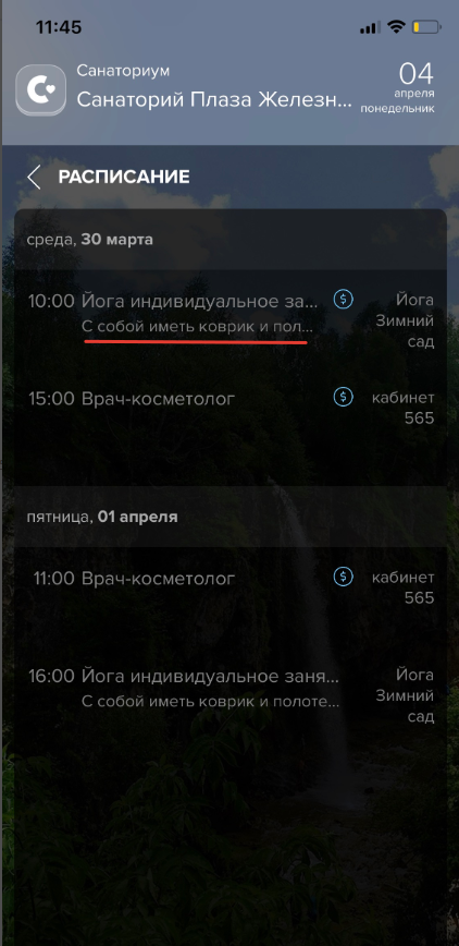 Комментарий в расписании - тут, как правило указываются требования к подготовке пациента/необходимые вещи, которые пациент должен принести на процедуру. Комменарий отображается в разделе "Расписание".