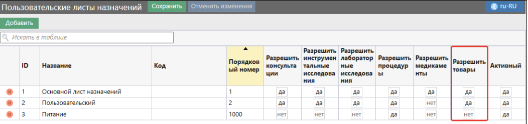 - В справочнике "Пользовательские листы назначений" установить "Да" на пункте "Разрешить товары". По умолчанию - отключено.