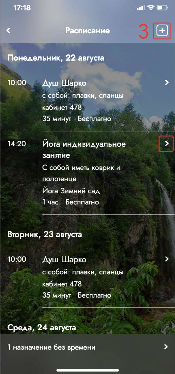 В нижней части экрана ссылка на "Назначения без времени" - это список услуг свободного посещения.