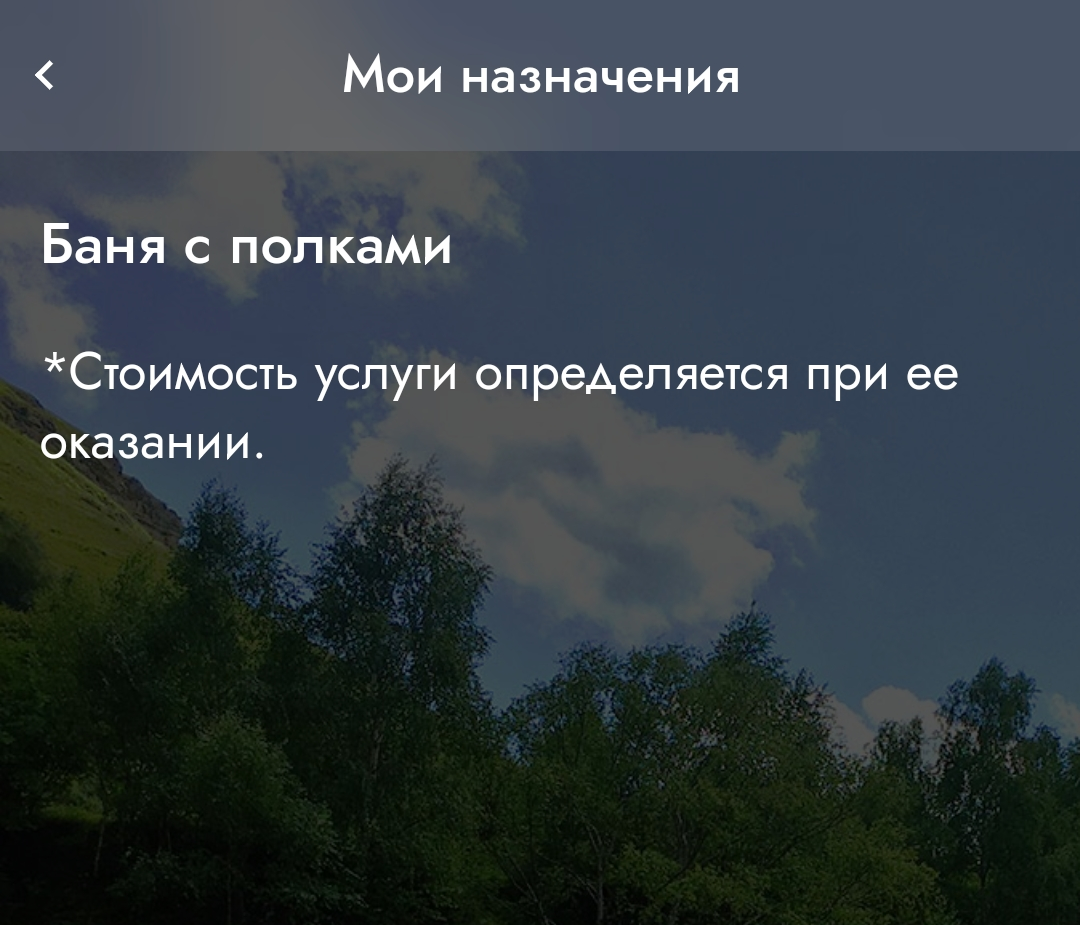 В зависимости от того, какой способ оплаты имеет назначение, услуга может по-разному отображаться в Мобильном приложении. Если услуга подразумевает возможность отпуска платных Лечебных действий, которые могут повлиять на ее итоговую стоимость, при переходе в детализацию услуги будет отображаться следующее сообщение: