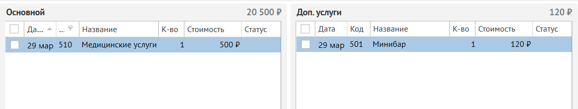 - Статус оплаты. Это может быть «Платно», «Бесплатно», «Включено в программу» (если услуга включена в программу по которой гость проходит лечение), "Возможна оплата" (если услуга может включать лечебные действия, которые могут измениться в ходе отпуска).