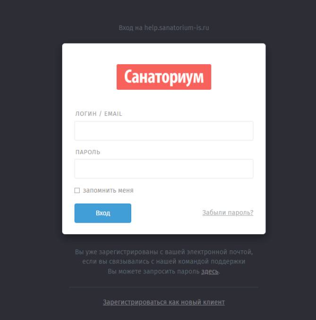 Для того, чтобы перейти в тикетную систему технической поддержки ИС Санаториум и Логус, Вам требуется в окне браузера набрать help.sanatorium-is.ru.