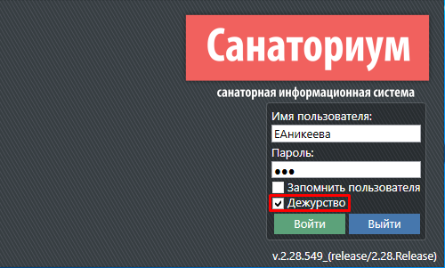 2. Для заступления на дежурство врачу или медсестре, при входе необходимо поставить соответствующую галочку.