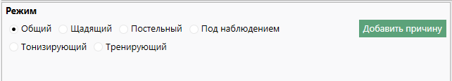• Дежурный врач может изменить режим пациента. Он выбирается на титульной странице ИБ в модуле "Пациенты":