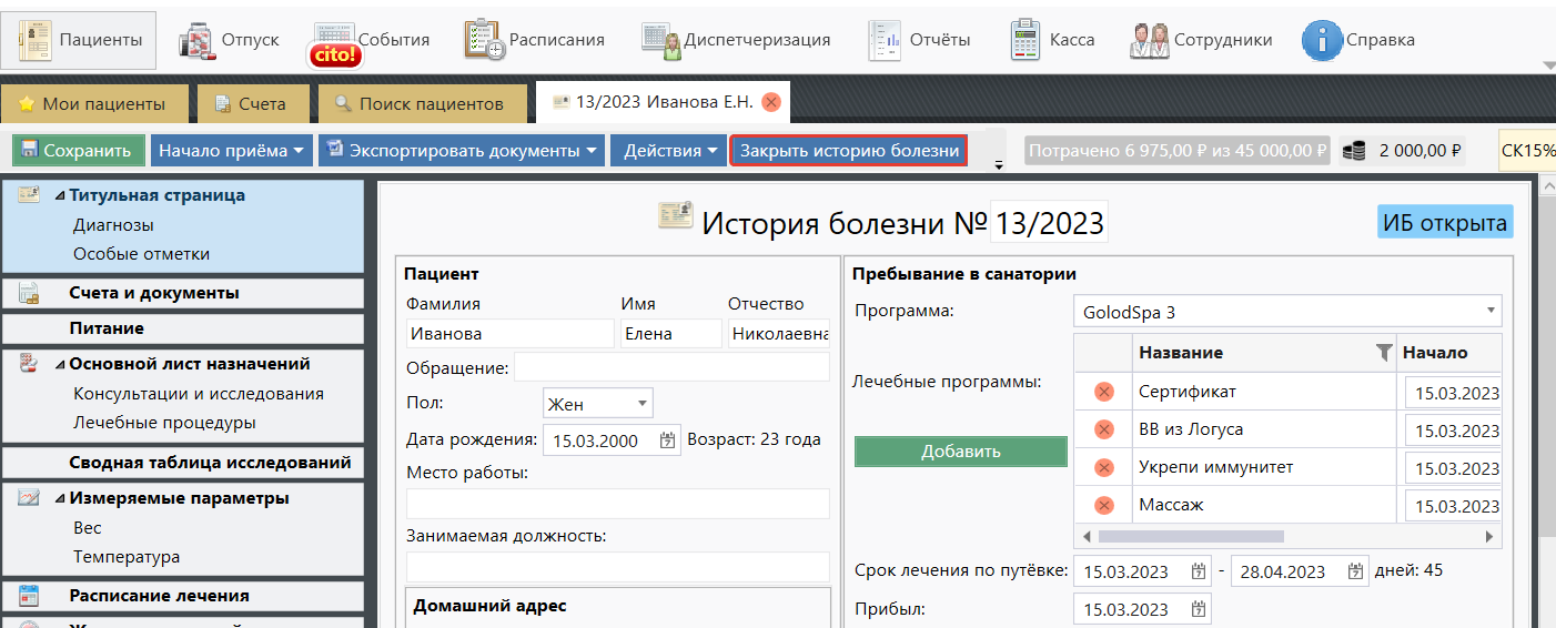 3. Чтобы поместить карту в архив, откройте ИБ и нажмите кнопку "Закрыть историю болезни"
