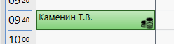 - Готово! В расписании кабинета/назначении отображается информация о том, что сотрудника нет на месте. И на это время записать пациентов нельзя.
