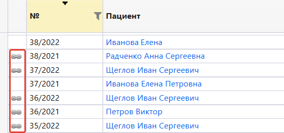 - В этой вкладке отображаются все пациенты, у которых есть назначения.