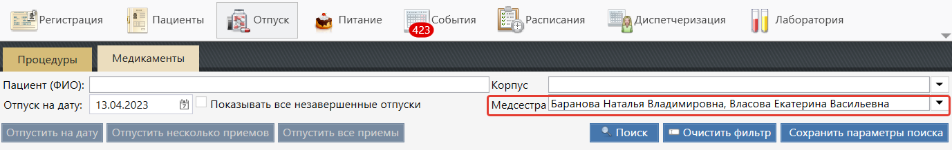 C версии 2.32.1439 добавлен фильтр по Палатный медсестрам: