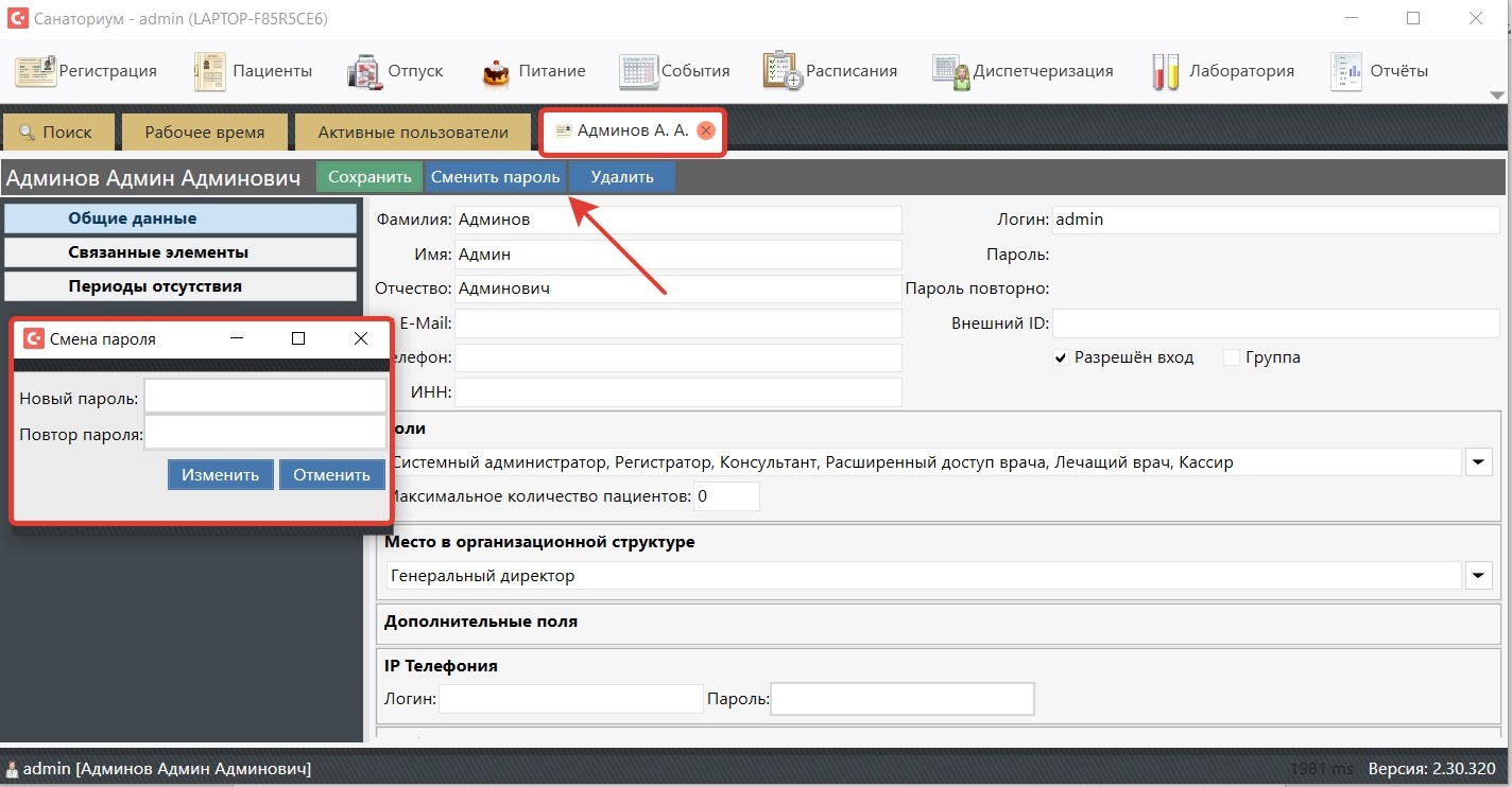 Стоит учитывать, что задачи и права могут отличаться в зависимости от бизнес-процессов санатория.