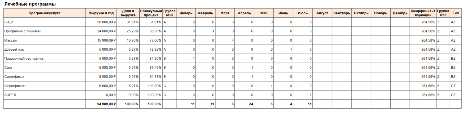 ABC-XYZ анализ услуг