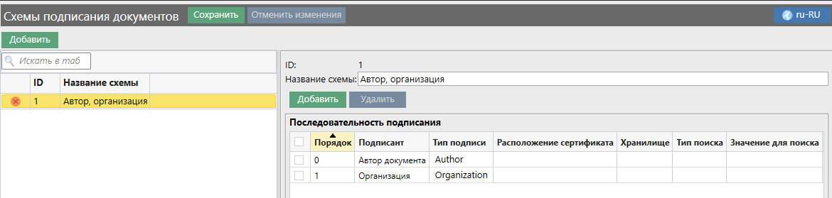 Справочник «Схема подписания документов»